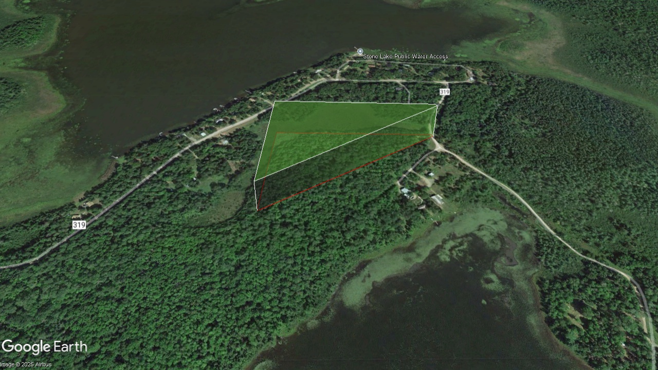 Best access is from the northeast corner along East Stone Lake Road. The dirt road is driveable year-round. Underground electric boxes and overhead power lines are nearby, and neighboring homes likely use well water. Strong cell service throughout the property.