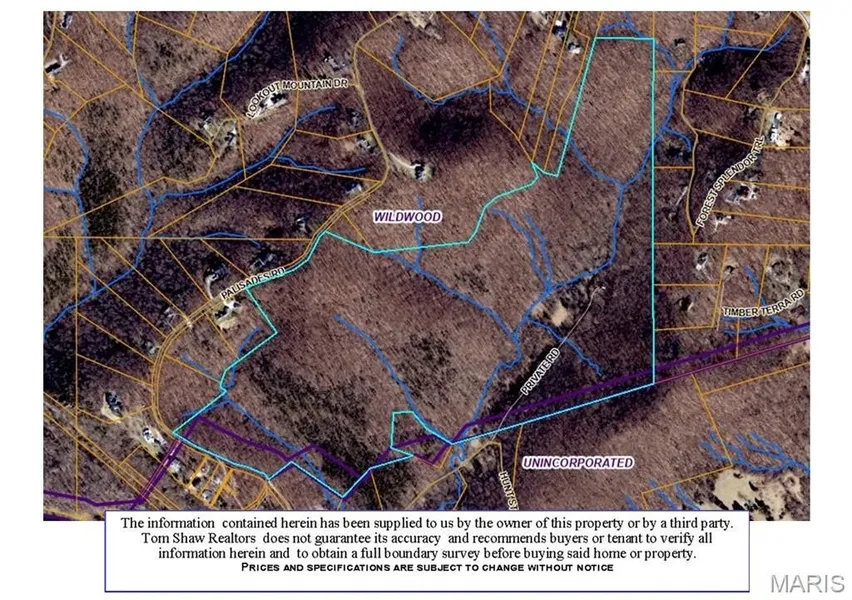 Fabulous private estate on scenic Palisades Road in desirable Wildwood! 117+/- Acres that offer a combination of open rolling land, with home sites, and wooded land with timber. Stunning views that go on for miles flaunting the most scenic views in West County! Enjoy the quiet serenity and spectacular sunsets all nestled in the heart of Wildwood. Rare opportunity to own this beautiful, very scenic acreage and still be close to major highways. The perfect place for a country estate, or contemporary farmhouse. This acreage offers seclusion, country style living, with an abundant wildlife habitat for the avid hunter and outdoorsman. Easy accessibility to major highways and minutes from the Wildwood Town Center amenities. No restrictions, just Wildwood & St. Louis County regulations and Road Maintenance Agreements. AAA Rockwood Schools. MUST SEE!