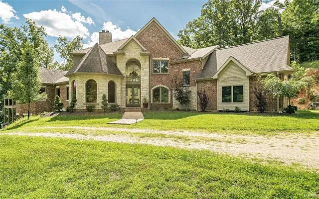 Serenity & nature abound in this private, luxurious, custom-built home designed by owner/engineer, located in AAA-Rated Rockwood School District. Minutes to Hwy44 and Hwy109, this 1.5 story rests on 11 acres with 5beds/5.5baths and 8000sf of living space! The beauty begins with gorgeous brick/stone exterior, grand entry foyer with suspended, curved staircase. DR with butler serving station. GR with 20ft ceiling & marble fireplace. Study with 14ft mural ceiling. Hearth rm with w/b fireplace & hardwood floors. Kitchen with marble floor eagerly awaits your gourmet design plans. MFL. Main floor masters quarters with 2 WICs, sitting area with turret mural ceiling, luxury bath with steam shower, two person Jacuzzi & veranda overlooks the Meramec River Valley! Extensive finish in LL: media rm, game rm, FR, wet bar and 5th BR suite. 1 acre stocked pond, frontage on the Meramec River with gravel ...