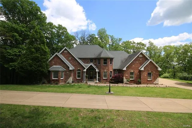 Custom-built brick & stone 1.5 Sty on 3.09-acre grounds! Open floor plan features soaring ceilings, Brazilian cherry & marble flooring & extensive millwork. Vaulted front porch entrance highlighted by architectural columns leads to 2-sty marble foyer, formal dining room with wide bay window and spectacular great room with floor-to-ceiling brick fireplace & wall of windows with private wooded views. Spacious open kitchen with 42" white cabinetry, granite countertops & stainless steel appliances adjoins light-filled breakfast room with atrium door to expansive deck. Coffered master bedroom suite with huge walk-in closet, luxury bath with jetted tub & adjacent study offers an appealing retreat. The 2nd floor extends the living quarters with 3 generous-sized additional bedrooms & bonus loft room. Lower Level entertainment space includes recreation room with granite bar, game room & media roo...