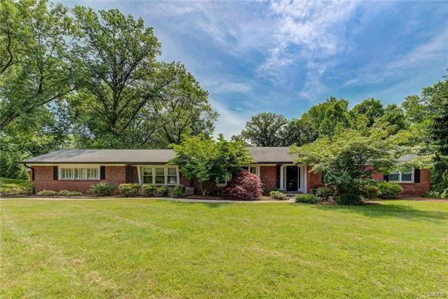 This mid-century ranch style home on approximately 1 acre lot with a swimming pool in the heart of Frontenac offers a lifestyle opportunity. Spacious living room with fireplace, dining room overlooking the expansive yard, cozy family room with fireplace, eat-in kitchen with newer stainless steel appliances, a nice size master bedroom with updated master bath, two additional bedrooms, updated full bath, half bath and mudroom completes the main level. The finished walk-out lower level has all new flooring and offers swimmers easy access to a full bathroom and large rec room. The lower level also offers a spacious office and abundant storage. Pool resurfaced with pebble tech approximately three yrs ago, newer gutters, some new carpet, and original hardwood refinished. Ladue schools, convenient location close to highways, restaurants and shopping make this a must see. Make offer!