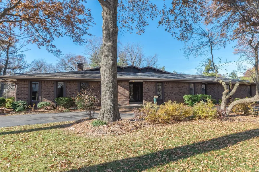 Dreaming of a lake home located in West County? This home will make all your dreams come true. This rambling brick ranch offers 3 generously sized bedrms, a study, 2.5 baths, all situated on a gorgeous 1.5-acre level lot, conveniently located near Hwys 270 & 40/64. This sprawling home has 3,648 sq. ft. of main flr living, a ginormous dining rm to accommodate all your lg. dinner parties, a great rm w/soaring cathedral ceilings, beautiful wood flrs, 9 ft windows & drs, sunken hearth rm w/wet bar & custom lounge seating for cozying up to the wood-burning FP. The kitchen offers custom cabinetry, breakfast rm & access to laundry, the large 2-level 3-season rm & the backyard. Meander to the master ste w/large en suite, wood flrs & access to patio. At the other side of the home are the 2 add'l bedrms, study & full bath. The 35+ acres of common ground w/23 acre stocked lake is available to resid...