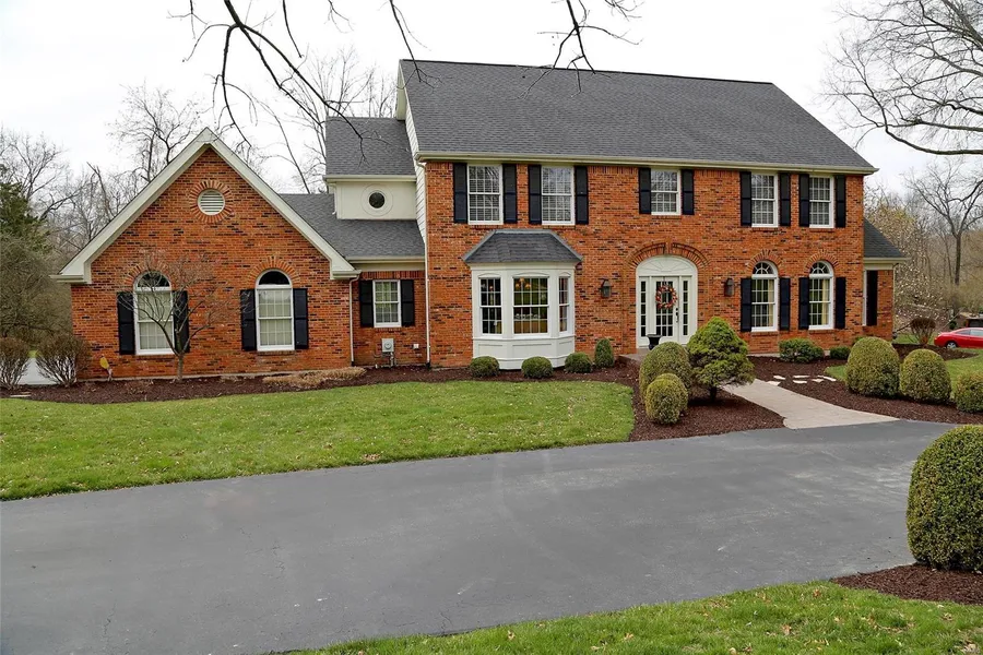 TASTEFULLY UPDATED 2-STORY ON 1 ACRE! STUNNING MILLWORK THROUGHOUT! BACKS TO WOODS! Enter off the circle drive & into the soaring 2-story open foyer w/T-staircase. Gleaming wood floors & 9' ceilings throughout the main level. Spacious dining room to the left, living room to the right, both w/palladian windows. French doors from living room into the handsome paneled den. Family room boasts a floor-to-ceiling gas fireplace, wet bar, & oversize bay window w/plantation shutters. Custom kitchen w/42" maple cabinets, center island w/breakfast bar, granite counters, stainless appliances, butlers pantry, & fabulous 8' long window above the undermount sink. Handy laundry room w/matching maple cabinets is adjacent. Atrium door off the breakfast area leads to covered deck that overlooks the level back yard & woods. 4 bedrooms upstairs: Master suite w/walk-in closet & exquisite private bath. 2 bedro...