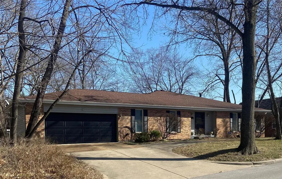 This Ranch Home has over 2500 sq ft of living space AND sits on a 1.22 acre lot! Three main floor bedrooms ALL have their own private bathrooms. Charming Vaulted Atrium room, Family Room with Bay Window and Skylight. Kitchen with Custom Center Island and Cabinetry is bright with light from Breakfast Room windows overlooking park-like backyard. Main Floor Laundry. Crown Molding on Main level. Central vac system. The lower level has a rec room, full bath and plenty of storage space. Two car garage, circle drive and another huge storage area & patio under the large deck. Lots of trees for privacy in the backyard. Zoned heating and cooling. Circle drive. Three sides brick veneer. Close to Vago Park and other Maryland Heights amenities.