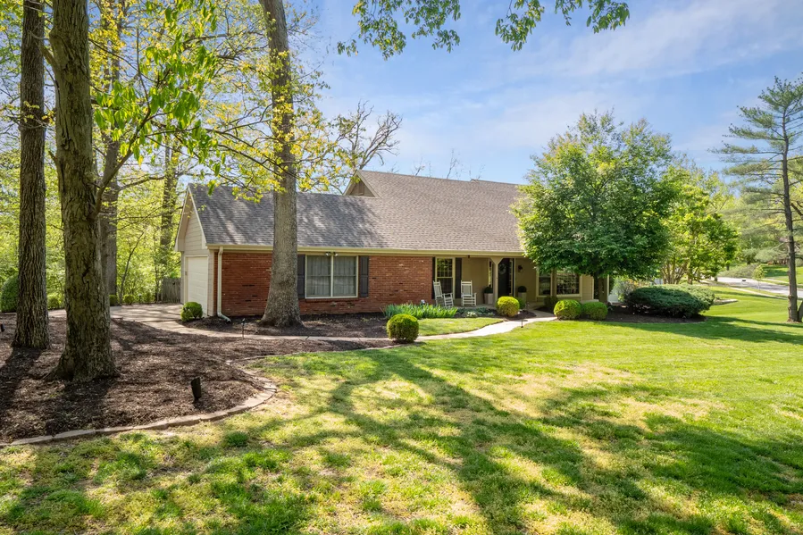 Executive home featuring 4 beds/4 baths and 3500 finished sqft located in picturesque Mason Valley. Semi-open floor plan features a vaulted family room opening to an eat-in kitchen with granite countertops, a Viking gas stove, and a center island. Main floor Primary bedroom with ensuite featuring a shower and tub. The gorgeous 1+ acre yard features an in-ground sprinkler system and entertainment space with landscape lighting. The deck, patio & fenced yard is accessible from the kitchen and the finished lower level. The lower level of the home features a rec room with a kitchenette with granite and a full-size refrigerator, full bath and bonus room for an office or additional sleeping location. The home is a short walk to Queeny Park featuring 564 acres of mixed-use trails, a dog park, a playground, tennis courts, fishing and more. This home is located in a neighborhood that has a bike parade, picnics, food trucks, tennis tournament, egg hunt, cocktail parties & more.