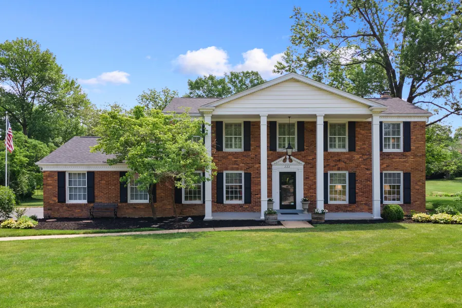 Situated on a quiet street in Town & Country, this stately red brick home boasts impressive updated white pillars w/ immaculate curb appeal. The generously sized front porch welcomes you as you step inside this center-hall traditional beauty. Moldings, hw floors & natural light throughout the DR & LR. A FR complete w/ wood paneling, fp & wet bar area overlooking an acre of private & serene land, along w/ a brick patio & manicured gardens. Plan to be wowed by the top-of-the-line eat-in Chef’s kitchen- granite countertops, stainless steel appliances & a breakfast bar. Off of the kitchen, a convenient main level laundry w/ doors to both the side entry oversize 2 car garage & backyard. The 2nd floor features a primary suite including a large sitting area, updated bath & his/her closets. Three more bedrooms & an updated hall bathroom. The LL is unfinished & pristine. This not-to-miss property sits in one of West County's most desirable areas- between Conway and Ladue Roads.