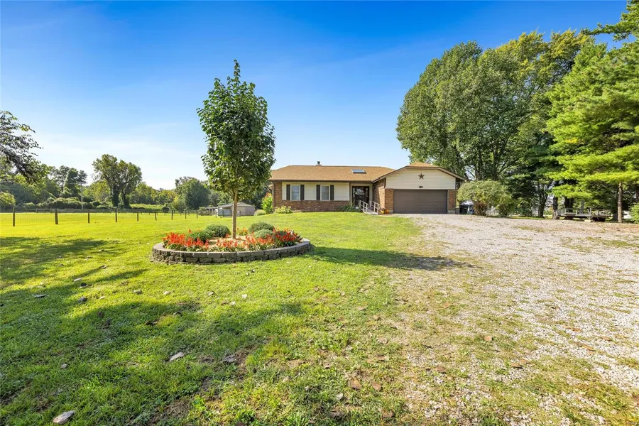 Your PRIVATE, COUNTRY OASIS is calling so you better answer! 3 fenced, level acres with a horse barn and separate pole barn. Current owners had "long term" in mind when they built this one. Enter into your intimate Foyer that connects to the 2 car Garage. Beyond that is the Great Room with wood burning fireplace that leads to the Family Room with a magnificent view of the level acreage and mature trees. Bonus freestanding pellet stove keeps you cozy in the winter. SE side of home has Main Suite, 2 add'l Beds and Full Bathroom in hallway. Enjoy the eat-in Kitchen with wood cabinets and electric cooktop. Off of the Kitchen you will find the multi-purpose Utility room with laundry hookups and enough space for pantry storage too. Out the back door you can settle in on your spacious covered deck that overlooks the property and is large enough for BBQing in the rain! Newer HVAC system and roof make this one move-in ready, but leaves room for personal updates. Public water, no floodplain.