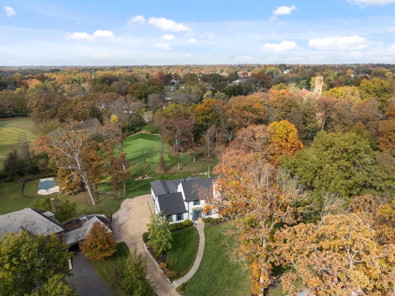 Discover this exceptional property, nestled on over 2 private acres with stunning views of lush tree lines and the adjoining Bogey Club golf course. The site is a playground for active families, complete with a turf sports field, a tree house, and a putting course. Expanded and remodeled in 2014, the home offers an open floor plan, expansive windows, and soaring ceilings, creating both a tranquil retreat and an entertainer's dream. The designer kitchen seamlessly unites the hearth and dining rooms with the outdoors through a charming screened porch and an elevated deck. The main level also includes a formal living room, gracious primary suite, office, and mudroom. Upstairs are three guest bedrooms, two sitting rooms and three full baths. The lower level features separate gathering and game rooms, a wet bar, a fitness room, an additional bedroom and bathroom, plus a five-car garage—each area opening to covered patios and a gently sloping backyard. This is a truly rare find!
