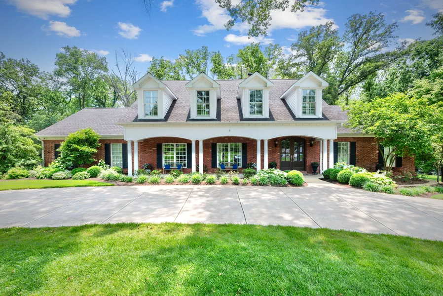 Ranch to 1.5 story build in 2015 with a floor plan and style for today's discerning buyer. Situated on an incredibly private and flat 1+ acre with utmost privacy. A dreamy white kitchen opens to the living room, which overlooks a sprawling patio suited for everyday living and entertaining. A gorgeous & light filled dining room, living room, and bespoke office/library embellished with rich millwork. Living made easy with a primary suite & dressing room tailored with old world charm & functionality, yet separate from the newly built 2nd story crafted to accommodate 3 bedrooms, 2 full baths & a family room for those desiring extra elbow room for relaxing with option of 5th bdrm/office on main. A full finished lower level offering 2,000+ sqft with FR, billiards room, bar, full bath, fitness room, cedar closet and superior walkout to a patio. Circle drive, covered porch, two-car garage and a newly landscaped level yard that is stellar for the buyer with lofty pool, pool house/carriage house dreams. Don't miss this slice of heaven in the heart of Frontenac, steps from public, parochial & private schools as well as St. Louis's superior hospitals! Call Suzie Wells 314.973.8761 or Justin Michael 314.252.9069 for more info.