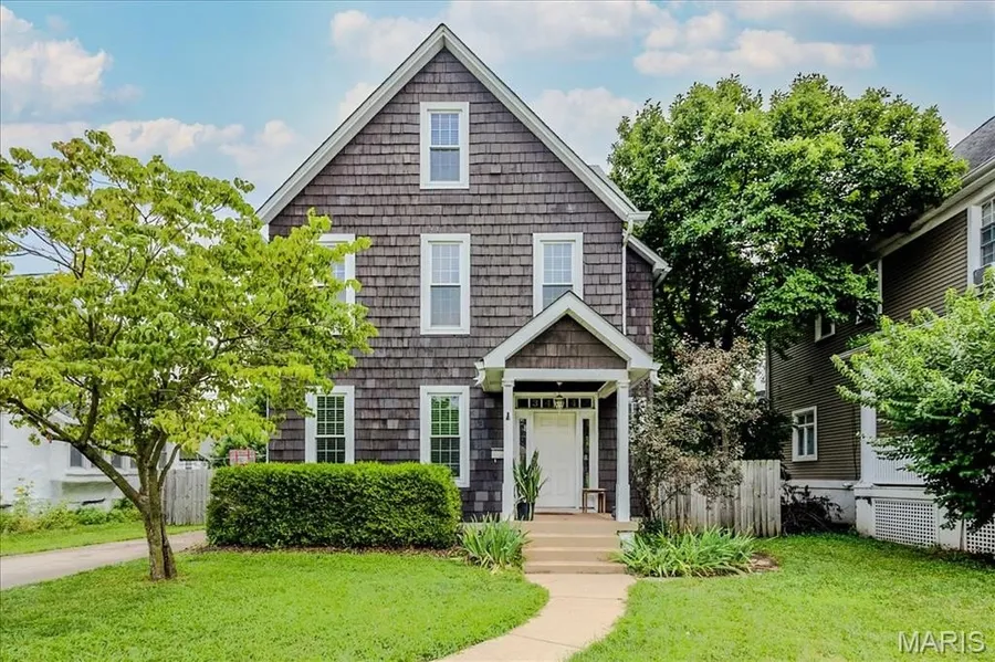 All aboard! Have front row seats to the past and the future with this Cape Cod charmer. This 1895 gem, wrapped in classic wood shake siding, sits across the street from the tracks in a no-horn zone — where neighbors love the quiet, rhythmic rumble of trains rolling past. This was a train town long before it became part of Route 66, and this home proudly carries that legacy forward. The original Maplewood train depot was just a block to the east, and the city's historic district is a block to the west. This property is the oldest on its block by five years and has witnessed tremendous change over the decades. The upcoming Great Rivers Greenway will be the next transformation, turning the front door into a gateway to an outdoor lifestyle. Imagine having a boundless connection to the metro area via trails — plus living mere blocks from Maplewood restaurants, parks, shops and activities! This home connects history, community and convenience all in one spot. Inside, timeless character meets modern comfort. The spacious, light-filled entry showcases period woodwork and fresh, neutral paint. Ten-foot ceilings and an abundance of windows fill the home with natural light, highlighting the hardwood floors found throughout most areas. Recessed lighting and ceiling speakers throughout elevate the living experience. The spacious kitchen features granite counters, stainless appliances and a large gas range, opening seamlessly to the family room and dining area. Gas fireplaces in the family and dining rooms offer glimpses into the home's 130-year history. Up the freshly carpeted staircase are two bedrooms and full bath; the larger room could easily be divided to create a fourth bedroom. From the landing, retreat up the winding wood stairs to the private primary suite on the third floor, where sunlight dances across the hardwood floors and the cross gable roof creates cozy, inviting spaces. Back on the main floor, exit out the side door to one of the larger lots in the city — fully fenced for privacy and perfect for pets or play. Enjoy the huge shade tree, large concrete patio, wood play set and storage shed, with plenty of grassy space left to garden or relax. The clean, bright lower level includes a laundry area, full bath, storage galore and walk-up access to the back yard. The zoned HVAC keeps every floor comfortable year round. With its large lot, open layout, and unbeatable blend of history and lifestyle, this Maplewood treasure isn’t just a house — it’s a home with personality, community, and a front row seat to the best of the past and the future. Updates: Downspouts, carpet and paint 2025; water heater 2024; roof 2019. Municipal inspection has been passed.