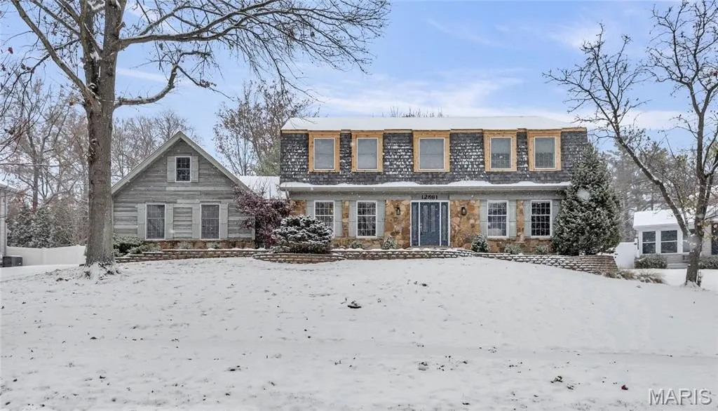 An incredible opportunity awaits you in Des Peres' popular Four Winds Farm Estates! This traditional 2-story home offers extraordinary space in a wonderful floorplan. Step into the spacious, light-filled entry foyer and be amazed by the warm and inviting spaces before you. The kitchen is truly a chef's delight, with plentiful wood cabinetry and gorgeous quartz counters. The granite tile backsplash is both functional and fashionable. The center island breakfast bar provides additional cabinetry for superior storage, offers seating space for a quick snack, houses the JennAir electric cooktop, and is punctuated with a custom shelf on one end. There is a full complement of stainless appliances at your service, including the JennAir cooktop and KitchenAid double wall ovens (both convection ovens). The adjacent breakfast room is perfect for daily dining, providing an excellent view of the concrete paver patio and rear yard through the large bay window. A generously-sized pantry and versatile planning desk area complete the eat-in kitchen. Pass through the butler's door to the separate dining room, where more formal dining and entertaining will be a special experience. You and your guests will appreciate the classic chair rail and beautiful crown moulding that highlight this light-filled space. Step across the entry foyer to the separate living room where you can relax with a good book, entertain friends and family, or even set up a terrific home office. It could even be a great play area!!! Head to the warm and inviting family room that both overlooks the rear yard and provides easy access to the attached 3-seasons porch. You will enjoy many a day and night in this space, whether enjoying the view through the 5-window bay, the glow of the floor-to-ceiling stone fireplace, or the convenience of the wet bar. Laundry will feel like much less of a chore in the spacious main floor laundry room that includes full size laundry units and a large by-pass closet to hold coats and other "stuff". A classically beautiful powder room is conveniently located between the kitchen and family room and completes the main level living space. Retreat upstairs to the generously sized bedrooms, including a luxurious primary suite. Both spacious and light-filled, the primary bedroom includes a large walk-in closet and enough space for a sitting area, if you choose. Step into the primary bathroom and appreciate the updated double sink vanity with solid surface top, separate dressing area, and large custom shower with tile surround and full-body shower system. The three guest bedrooms are light-filled retreats that provide ample floor space and closet space. A second full bath is conveniently located just outside the three guest bedrooms. The sizable basement space is mostly unfinished and provides both an incredible amount of storage and the potential for more quality living space - there's actually a billiard table that can stay and a walk-behind wet bar that awaits a new chapter in its life. If you are looking for quality outdoor living space, you can have the best of both worlds here. A wonderful paver patio in back is the perfect spot for enjoying a beautiful weather day, while the enormous vaulted 3-seasons porch is ready for you on those cooler or wetter days with its multitude of windows allowing plentiful natural light to fill the space.