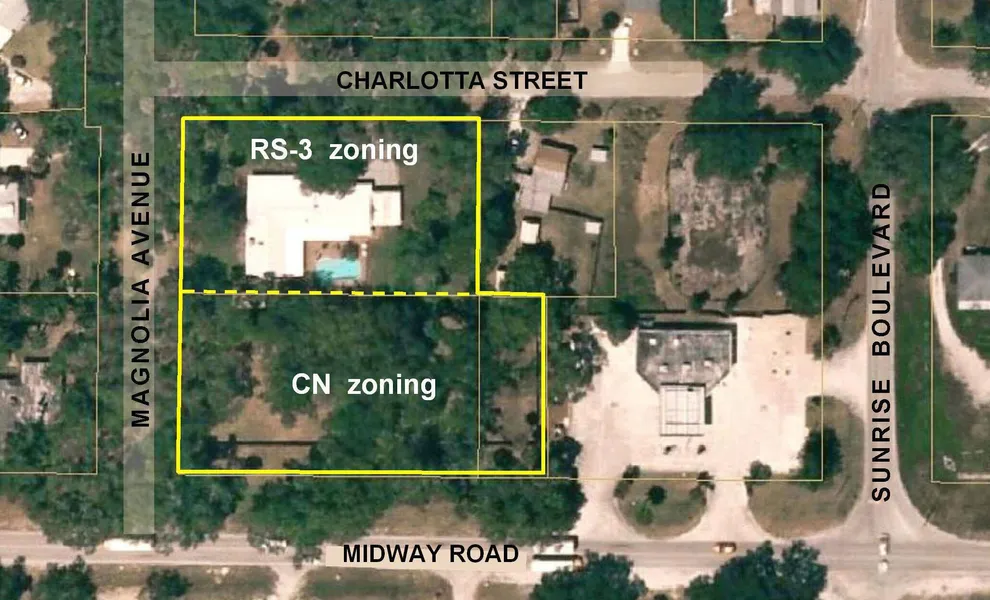 1.39ac with Mixed Zoning: 2 Parcels on Midway Road are zoned CN - Commercial and have 260ft of Frontage on Midway; the rear parcel is zoned RS-3 and has a 2,882sf Brick Home with 3 BR, 3.5 Baths, 2 car Garage + Double carport and an in-ground pool with spacious deck. The property has 3 road frontages and has great redevelopment potential.