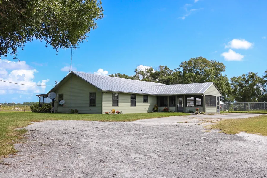 Amazing Ranchette nestled on nearly 5 fenced acres. Located in St Lucie Co minutes from Vero Beach surrounded by polo farms & equine properties. This 4/2/2 with separate over size garage is spacious but yet cozy. Surrounded by lush landscaping, pond fully fenced, so tranquil.This home has hurricane impact windows, Hardie plank siding, metal roof, Large metal building, tack room/ guest quarters, RV parking. There are no restrictions so bring your horses, goats, cattle, chickens and all Ag1 uses. This property is centrally located close to shopping, dining, I-95, schools and more. This is a one of a kind property and a must see.