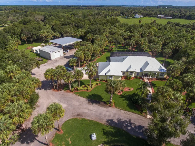 Paradise is found on this 10.8 acres of beauty. This beautiful private estate has so much to offer including the 2002 CBS home that features 4/4/2 electronic gate security entrance, lush landscaping, heated salt water pool with fountains. Two tiki pavilions with a full summer/outdoor kitchen, jacuzzi, sauna and outdoor shower. The interior of the home is light and bright , very spacious and a kitchen that any cook would love. New stainless appliances in 2019, washer/dryer 2018 new metal roof 2018, updated master bath & guest bath 2019.An added bonus to this home is a F5 Tornado FEMA rated room poured solid concrete reinforced that can be used as a quest suite/mother-n-law cottage with a separate entrance, double doors and plumbing.