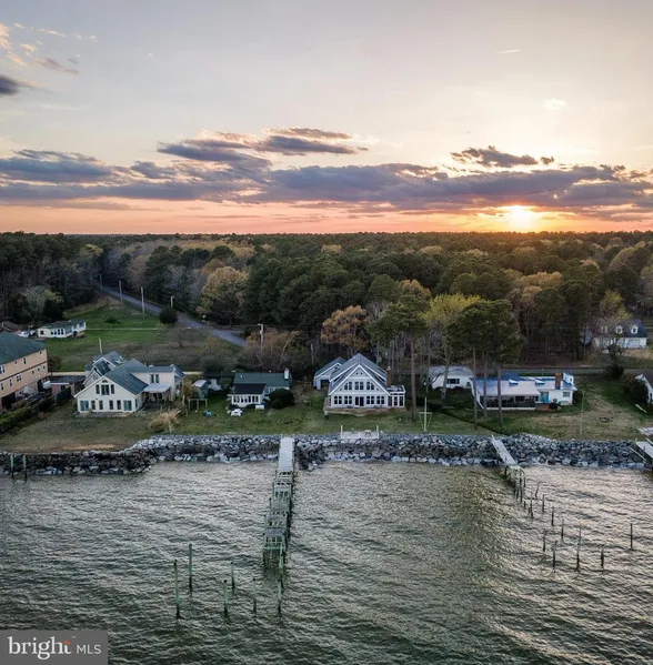 Estate sale. Only one owner of this contemporary A-frame that was custom built in 1992. Great architectural design. Open floor plan w/ loads of windows, skylights & high ceilings to take advantage of the fabulous view of the Chesapeake Bay . Terra cotta tiled flooring in living spaces. Great room has a stone fireplace. Main level master suite. Upstairs has 2 bedrooms, bathroom & loft with views of the Bay, this space makes a perfect home office! Mud room/ laundry room with utility sink & extra cabinets. 3 season room , two decks, rip rap sea wall. Outdoor shower. 2 car carport with shop that has a sink & built in work bench. Carport has floored second story storage room. Enjoy year round living or vacation home. Sunrise views. Sellers are having septic system replaced which will be a holding tank holding per county guidelines. Should be completed by September.