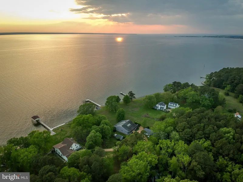 Serene waterfront setting on gorgeous 4.9 acre lot. Well built home features cherry cabinets, high ceilings, brick fireplace,geo thermal HVAC, tank less hot water, house generator, & an open floor plan. Enjoy watching beautiful sunsets from the huge screened porch. 3 car detached garage with studio that has a slate floor. Boat storage shed. Garden shed. Outside shower. BBQ area. Two porches. NO FLOOD INSURANCE NEEDED !!