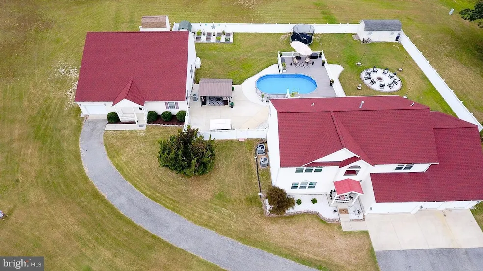 You have found the home for entertaining. A guest house, a pool, Fenced in back yard, Super sized deck, Fire pit area, and so much more. Sellers have updated with new windows, doors, one HVAC, Garage door openers, Solar lights, etc. Main house has primary bedroom and primary bath, with 3 more bedrooms on 2nd level with laundry room and 2nd bath. Main level has super kitchen with backsplash, gas cooktop, stainless appliances and dbl oven, disposal, super sized island and deep farmhouse style sink, living room, dining room, family room, and breakfast area leading out to your very own oasis. The basement has a lot of extra storage area and set up as an efficiency apt. The attached garage is super sized too for 3 cars and a work area. The guest house has 2 BR, 1 BA and large open area for Kitchen, Dining, and Living room. Attached one car garage and a huge RV garage. Guest house on it's own septic system. Shared well with house. The outside oasis has a huge deck, with pool, pavilion, cabana, grilling station, fire pit, solar lights, all enclosed in the private vinyl fencing. Come check it out today!