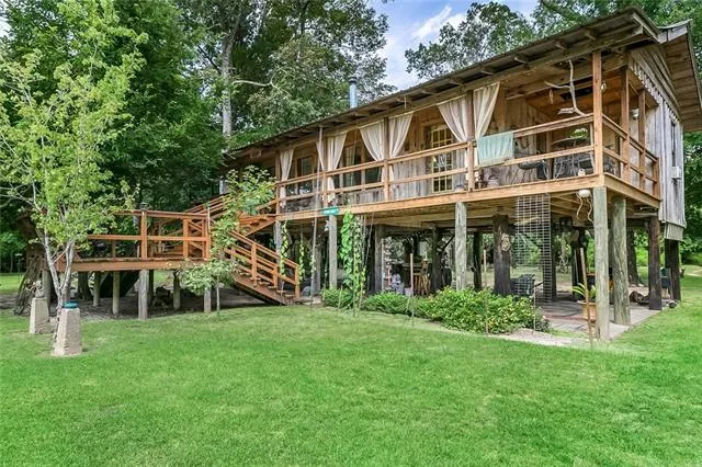 Water navigable! Adorable 2 bedroom camp located on the Bogue Chitto River in Bush. 2 bedrooms on 5.26 Acres with a large porch and great views of the river. Great home or camp for someone who enjoys spending time on the water! Tile floors and gorgeous wood walls throughout, plenty of space below for entertaining.