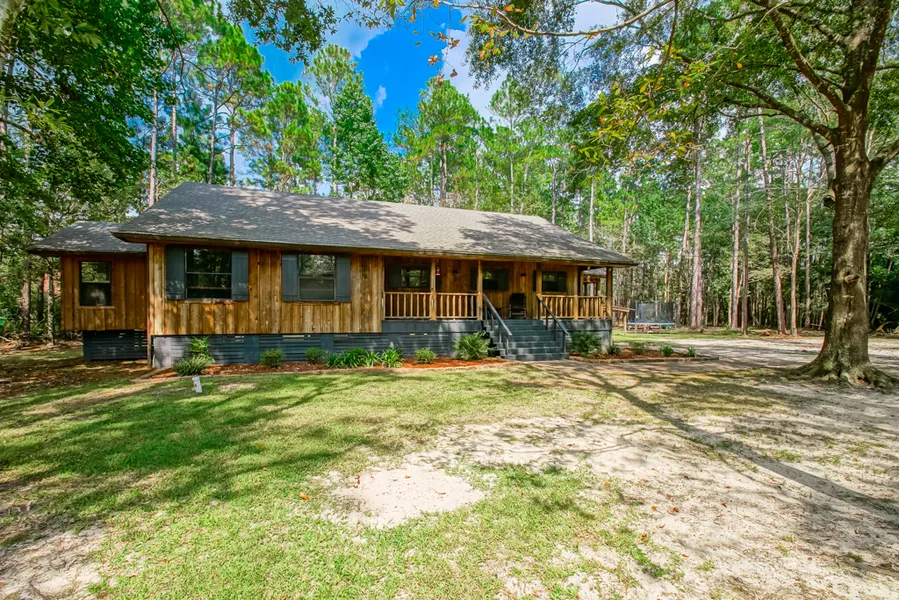 Charming rustic home tucked away on three acres in sought after area of Lacombe. Open living and kitchen area featuring exposed wood ceiling. Quartz countertops in kitchen with stainless appliances & wine cooler. Wood flooring & tile throughout. Open formal dining area with vaulted, planked ceiling. Laundry room features ample counter & storage space. Grand oversized front porch. Small shed/covered parking area to rear of home.