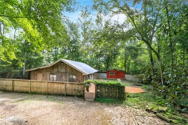 This rustic ranch home is a serene retreat nestled in the tranquility of the woods, situated on a quiet dead-end street off shady pines in northern Lacombe. the property offers a blend of privacy and seclusion, with ample shaded outdoor spaces designed for gatherings and entertaining. A notable highlight is the large outbuilding, affectionately known as the "Little Red Barn", which provides extra storage and adds a unique touch of charm. The scenic firepit area completes the outdoor amenities, offering a cozy spot for relaxation and making memories with friends and family. Inside the home features a variety of custom-crafted details that contribute to its distinctive character. Elegant touches such as built-in elements, stylish wallboards, intricate ceiling medallions and robust rustic beam supports seamlessly running throughout the interior. The Kitchen is particularly noteworthy, a shiplap backsplash and an expansive bar area adorned with beadboard kick plating and eye-catching drop pendant lighting. These design choices create a warm, inviting space for cooking and entertaining. The owner's suite serves as a luxurious sanctuary, highlighted by cathedral ceilings and a grand platform designed for a king-sized bed. The en-suite bathroom offers a spa-like ambiance with natural bamboo walls, an elevated soaking tub and a pedestal sink complimented by an entire wall of built-in shelving. For additional relaxion, the home includes a screened-in covered porch with a tin roof for enjoying a cocktail and taking in the surrounding natural beauty. This property combines rustic charm with modern amenities, providing a peaceful escape with convenient access to hwy 190 and 434 for easy commuting.