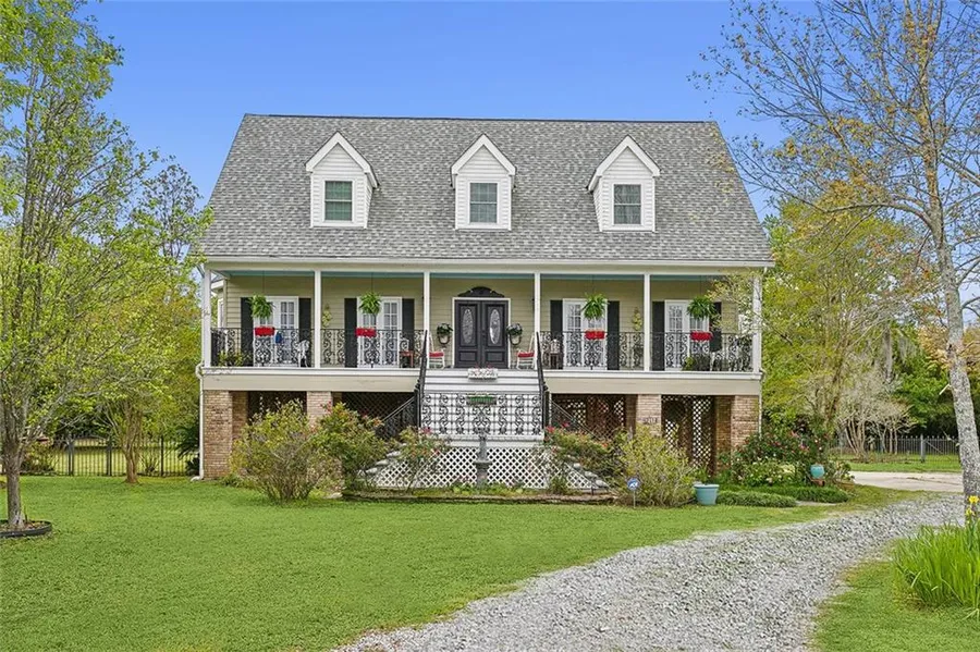 Welcome to the tranquility, comfort, and convenience of Lewisburg near The Lakefront and Causeway! This spacious Acadian-style home nestled in a serene cul-de-sac offers plenty of living space with just over 4,000 square feet of living area, 4 bedrooms, 3 full and two 1/2 baths. An additional covered space underneath includes a storage area, double garage doors for parking, and ample room for parking. Upon entering the foyer, a cozy sitting room welcomes you on one side and on the other is a formal dining room with picturesque views of the lush surroundings. The well-equipped kitchen features bar seating, and a breakfast area with double doors that open to a screened porch, perfect for enjoying morning coffee or evening meals al fresco. The stunning living room impresses with high ceilings, gorgeous, white, wood beams, and a beautiful fireplace, complemented by an attached deck, ideal for outdoor gatherings. The primary suite adds to the homes comfort with multiple skylights, new carpeting, an en-suite bath featuring a jacuzzi tub and spacious shower with a bench. Upstairs, there are three bedrooms each with reading nooks and there is an additional room, currently used as an office, but could easily be an additional bedroom or hobby area. Multiple staircases provide convenient access to each level. Ample storage throughout, including space underneath the home that could be ideal for converting into an apartment, entertainment area, or game room. Multiple porches allow for enjoying the lush green views from every angle. Make this peaceful oasis your own. Schedule a showing today and experience the perfect blend of comfort, space, and convenience.
