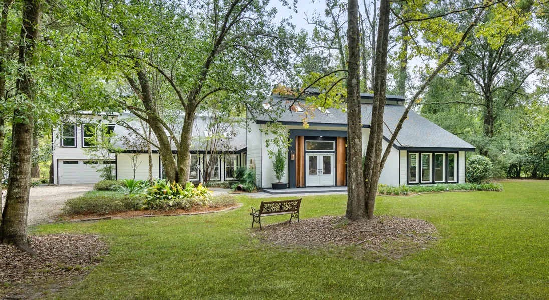 This modern home has so much to offer! It is situated on a picturesque 2.85 acres of land, with an enchanting backyard that invites you to take a walk to the creek at the far end of the property. This property features enough acreage to build a tennis/basketball court and a workshop/studio building in the back. As you step inside, you'll notice the open floor plan with huge rooms, soaring ceilings, skylights, and a wall of windows. This home flows effortlessly from room to room. The renovated kitchen with stainless steel appliances and granite countertops were designed for easy entertaining. Each bedroom is quiet and separate. The upstairs primary suite includes a sitting area, fireplace and balcony deck overlooking the serene backyard. There is an additional primary bedroom suite on the first floor as well as a home office with a separate entrance. The entire home is floored beautifull...