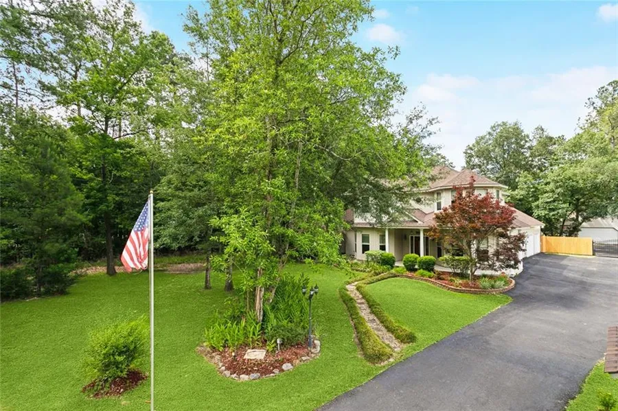 Entertainer's dream home inside and outside... there's something for everyone and every season. Spacious custom Victorian style home on 1.446 acres with sunroom, covered patio w/hot tub, huge deck w built-in benches, covered BBQ area, fire pit surrounded by swings, 8 x 10 green house, 10 x 10 storage shed, privacy fenced backyard + an 816 SF workshop with work benches + a one-bedroom apartment w/kitchen, living, and full bath, above the workshop! There is room for your RV, boat, camper, jet skis and more! Step inside this five bedroom home with 10' ceilings downstairs, crown molding, formal dining room, great room w/corner stone fireplace w/gas starter, bright spacious kitchen with white cabinets and decorative center island, granite countertops, large breakfast room, office or 5th bedroom, full bath, king-size primary bedroom with step ceiling & fireplace, luxurious bathing suite with oval soaking tub, separate marble shower, dual vanity, urinal & commode, and oversized custom walk-in closet. Upstairs features three large bedrooms, walk-in closets, updated bath w walk-in shower, plus large, floored attic for additional storage space. Extra features include: Central vacuum system, security system, built in nightlights (7), door activated auto lights in kitchen pantry & closets, two fireplaces, two HVAC system, and two water heaters. Some recent updates 2025: septic air pump and new alarm battery, 2024: Water pump 1.5 hp , 2023: Kitchen cabinets were painted, and new asphalt driveway, 2022: Well pressure tank replaced 120 gallon, hot tub pumps & computer replaced, 2021: New floors downstairs interior, 2020: New roof, installed windows patio/sunroom, 2019: upstairs shower renovated, the hallway, stairs, den, dining room painted, 2017: replaced two water heaters, 2008: added an irrigation system. Great schools: Abita Springs Elementary & Middle, Fontainebleau Jr & High Schools.