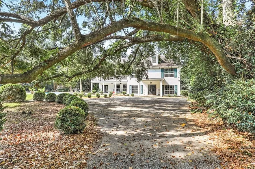 Stunning Victorian Style home on approx 2.87 Acres, in-ground pool, tennis/basketball court, and BREATHTAKING views of the grounds. 400 yr old Oaks. Boasting 5 bedrooms, 5 baths, Open Kitchen/Great Room, Chef's Kitchen w/Commercial-grade stainless appliances, Formal Dining and separate Den. Large bedrooms downstairs w/ bathrooms, could serve as separate primary. Enormous Primary Bedroom featuring separate Dual Bathrooms, with walk-in closets! Renovations near completion. Don't miss out on this Luxury Home!