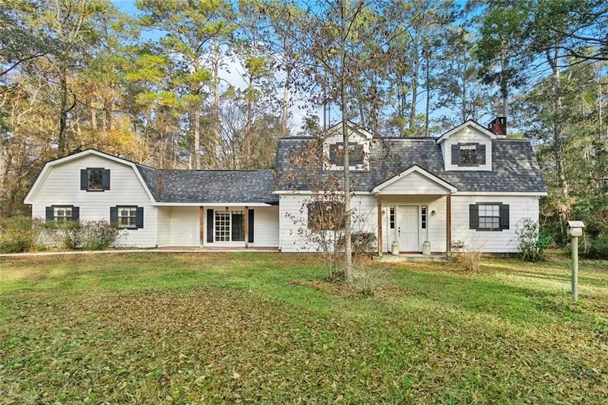 Discover the perfect blend of comfort and convenience in this charming country home on tranquil 1 ACRE. ROOF REPLACED IN 2023. Just minutes from downtown Covington, dining, shops, and recreation. Experience the ultimate in flexibility and comfort with this versatile layout featuring 2 PRIMARY SUITES one upstairs, one down and two spacious bonus rooms excellent for a cozy keeping room, dining space, or inviting den. NO CARPET. Private downstairs ensuite with walk in tub/shower great for guest or MULTI GENERATIONAL LIVING. Easy care engineered wood floors flow seamlessly throughout the downstairs. Kitchen awaits your custom finishes. This home comes complete with a refrigerator, washer, and dryer everything you need to move in with ease and comfort. Enjoy the bonus of a large POWERED WORKSHOP with countless possibilities. Peace of mind with PREFERRED FLOOD ZONE C. A rare mix of country charm and convenience. NO HOA.