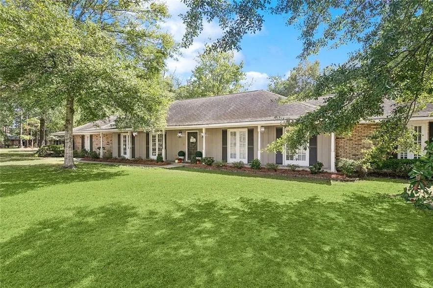 NEW PRICE! NEW ROOF TO BE INSTALLED BEFORE THE KEYS ARE YOURS! Tucked inside the wildlife sanctuary community of Brier Lake Estates, this 4-bedroom, 2-bath home sits on an acre of natural beauty where geese waddle by and native birds add to the sanctuary-like vibe. As you enter the foyer, you can't help but be drawn into the stunning living room-- showcasing 13' beamed cathedral ceilings and a wood-burning fireplace that anchors the space. From here, glass slider doors flow seamlessly to a covered brick patio well suited for hosting memorable get togethers or peaceful moments in the fresh air. The elegant dining room, with French doors facing the front porch, offers a charming backdrop for entertaining and holiday gatherings. The spacious backyard invites gardening, volleyball, birdwatching, or even the addition of a studio for multigenerational living. Lovingly built and maintained by original owners, this home is ready for its next chapter. Just minutes from I-12, local shops, and seasonal events, Brittany Drive is where nature and neighborhood charm come together. Located in Flood Zone C.