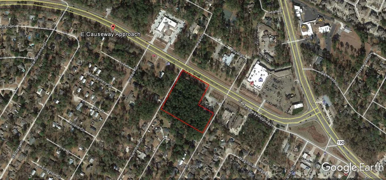 Large commercial-zoned parcel in high-demand Mandeville area. Lots of permitted uses with the parcel. Great location for your business, office or retail! L in shape with Citizens Bank & Trust next door. Located between Massena St. and Lambert St., this property is also across from City of Mandeville government offices and Wal-Mart Neighborhood Market.
