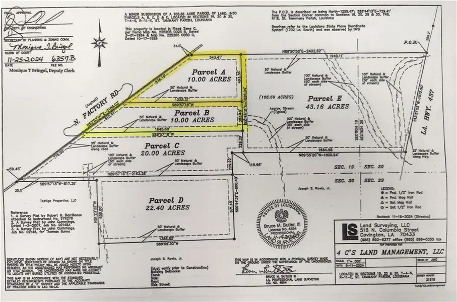 Excellent development opportunity or private setting for your new home on 20 acres in the beautiful, quiet Folsom. Convenient location with easy access via Hwy 40 to Folsom and Hwy 437 to Covington. Flood Zone C. Multiple parcels available up to 105 acres, perfect for quiet living or your equestrian estate. See attachments for drawing of parcels.