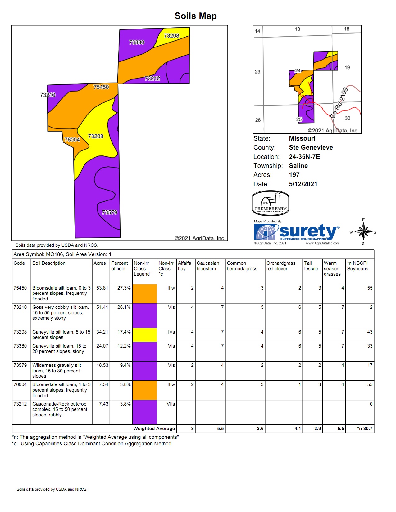 Search for detailed parcel information including; Elevation & Vegetation Maps, Ownership Information, Detailed Parcel Information, Crop History Map, Soil Survey Productivity Data, and more.