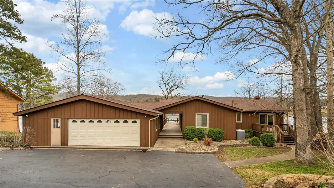 Enjoy fishing, boating, tubing or skiing on a 85acre lake. Windows spanning the width of the living room offer views of the lake and sightings of bald eagles. The screened in porch, also overlooking the lake, is the perfect spot to an evening cocktail at sunset. The breakfast/hearth room has a woodburning fireplace and opens up to a bright, white kitchen with a center island. The large owners suite boasts a private full bathroom, dressing area, and a convenient second washer/dryer added by the current owner. The lower level walks out to the lake and has an additional 3 bedrooms, full bathroom and recreational room. In the lower level there is also lots of storage and an additional washer/dryer hookup. The furnace and hot water heater were replaced in 2020. The backyard has a patio and boat well. The rocks along the lake are often home to sunning turtles and fishing Great Blue Heron. Located near Ste. Genevieve's National Park, wineries and hiking trails, this home has it all!