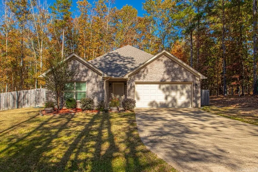 Beautifully maintained home in the desirable Pinewood Estates Subdivision! This very private 3-bedroom, 2-bath home sits on just over an acre and features an open floor plan with 10’ ceilings in the living area and crown molding throughout. The kitchen offers granite countertops, custom soft-close cabinets, a breakfast bar, and a brand-new stove—plus the refrigerator, washer, and dryer convey! Enjoy the warmth of a wood-burning fireplace and the elegance of wood floors in the main areas with ceramic tile in the kitchen and baths. The spacious primary suite includes a tray ceiling, large walk-in closet, and granite vanity. Outside, you’ll find a large covered patio, full gutters, and a backyard that extends roughly 40 yards beyond the fence line. Bryant Schools!
