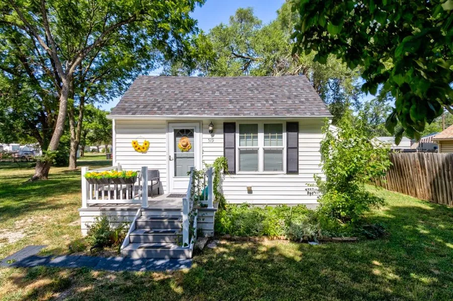 Perfect starter home, downsizing or investment property! Featuring 2 bedrooms, 1 bathroom w/ a 16x12 wood storage building w/ loft & alley access. Vinyl clad replacement windows, washable furnace filter, roof, gutters & downspouts all newer! Kitchen includes a stainless steel side by side whirlpool refrigerator, Frigidaire Gallery Air Fry stove and GE electric washer & dryer. Nice backsplash in kitchen & bathroom. 10x5 front porch w/ Trex & vinyl clad railings.