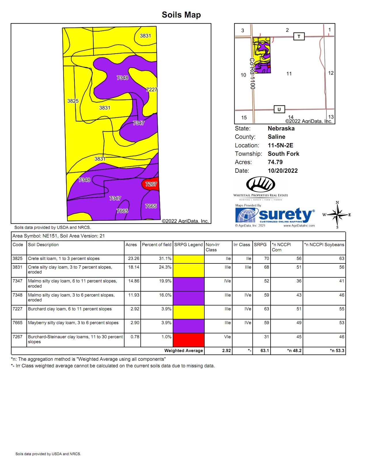 Soil Types: Crete silty clay loam, Longford silty clay loam, Hastings silty clay loam