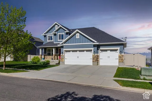 Check out this amazing home in the highly desirable neighborhood of Bluffdale Heights. Check out the view! The home sits up above the south end of the valley giving amazing views of the valley down below and of the Oquirrh Mountains. With its easy access to the freeway, quiet neighborhood feel, and no HOA, this is a great place to live! This 2 story home features an open layout with large upstairs bedrooms, and large gathering areas for entertaining. The master bedroom size is a must see! The home has a ton of upgraded features which include; a double oven & gas range top, built in fire place, a large trex deck & partially covered patio with seating perfect for a fire pit or entertainment, fully finished basement and much more. The basement has a separate entrance and has a wet bar which could easily convert into a full kitchen for a Mother in Law apartment for additional income. Don't m...