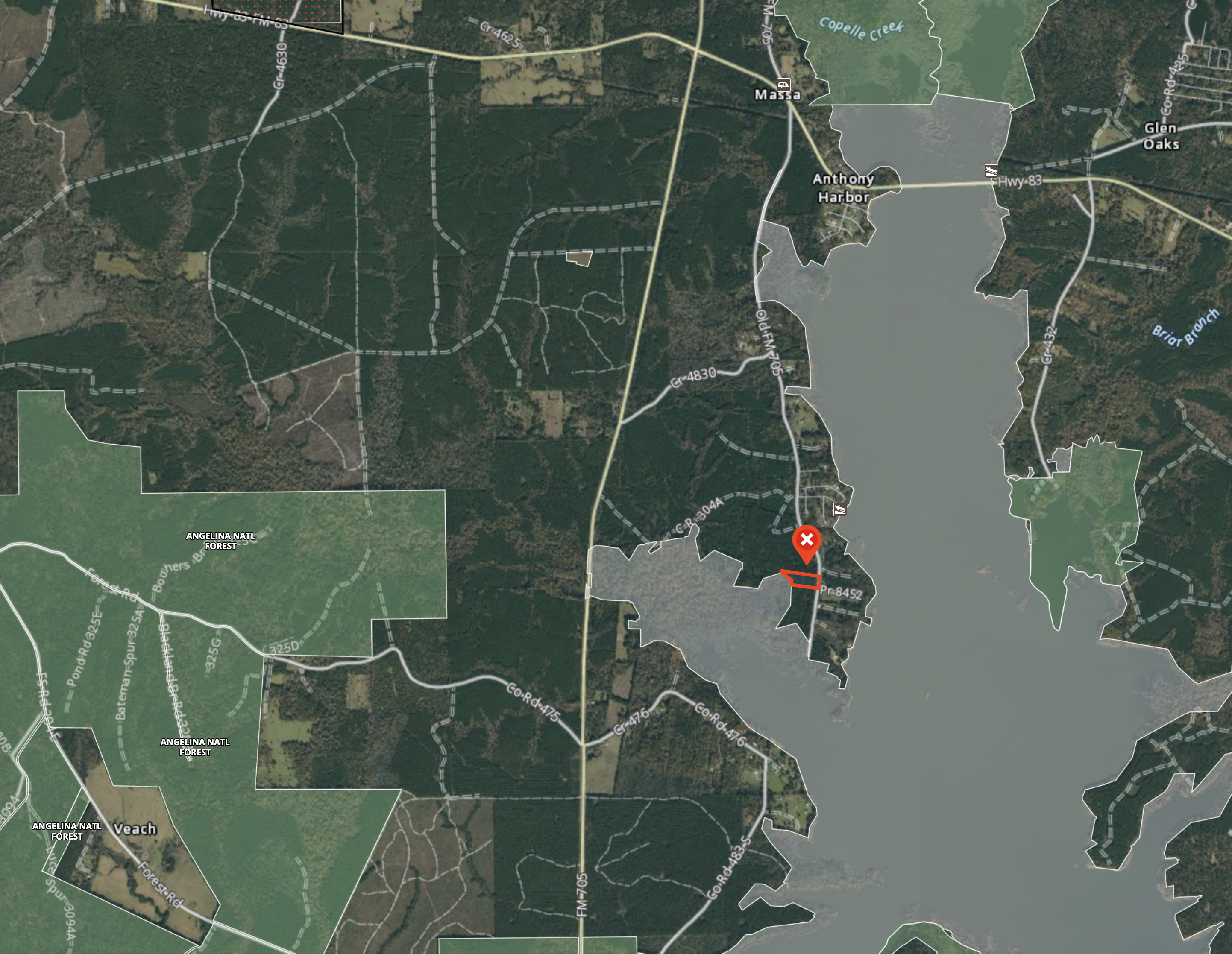 This 6 Acres borders the Corp of Engineers on Lake Sam Rayburn, with a large duck pond on this frontage!