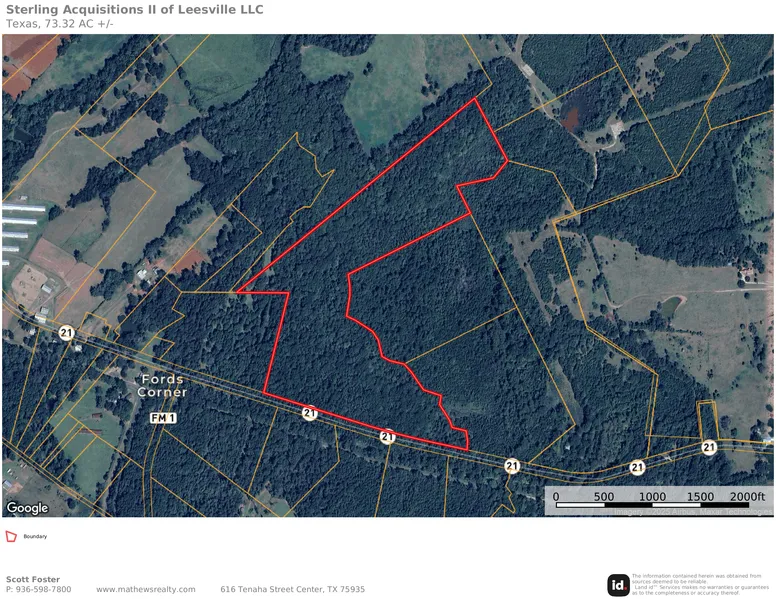 The mapping is offered as a general guide as to the location of the property, but no guarantee is made as to the exact location of these boundaries. To arrange site visit contact listing agent Scott Foster at 936-591-2339 or office at 936-598-7800. Buyers Agents are required to contact listing agent to arrange site visits and are required to accompany potential buyers at the time of the first visit.