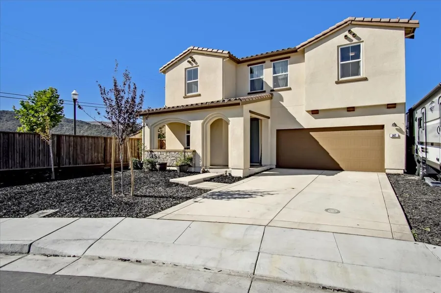 Welcome to the quiet cul-de-sac of Cedar Court. This 2-yr old home greets you with a long front porch perfect for your morning coffee as you take in the scenery of the neighboring hills. Providing you with all the space you need, it has 5 bedrooms & 3 full bathrooms (1 of each downstairs), large loft, upstairs laundry, 3-car tandem garage, RV parking and solar panels. Beautiful luxury vinyl plank flooring leads you to the gorgeous gourmet kitchen with granite countertops, oversized island with sink, huge pantry, breakfast bar and separate dining area. Upstairs loft is a perfect hang-out spot for your Friday movie nights. Large master with bonus reading room, walk-in closet and a view to die for! Low maintenance backyard with covered California room, play structure and spacious side yards. Get away from the hustle and bustle and welcome to San Juan Bautista!
