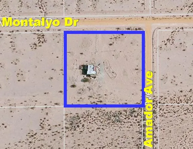 Driving Directions: From I-10 take Hwy 62 through Twentynine Palms. Turn left on Utah Trail. Turn right on Amboy Rd. Turn left on Bullion Mountain. Turn right on Valle Vista Rd. Turn left on Amador Ave. Turn left on Montalyo Dr. Property is on the southwest corner of Amador Ave and Montalyo Dr. It may also be accessible by taking other routes. Take an aerial map.