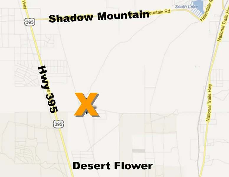 Driving Directions: From I-15 exit at Hwy 395. Take Hwy 395 north. Pass Desert Flower and pass Purple Sage/Torosa and go a few more blocks. Then turn right on a dirt road that may be named Koala Rd but may be unsigned. Take the dirt road to the parcel. Note: if you're on Hwy 395 and you reach Shadow Mountain youve gone too far. Take an aerial map, don't leave home without it.