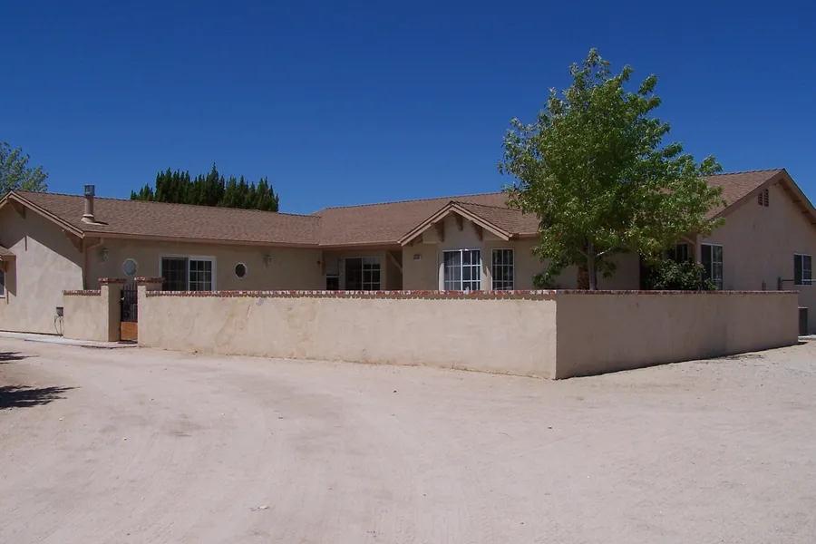 The Shining Faith Ranch is now for sale. This is a horse lovers paradise. The home is a lovely 3 bedroom 2 1/2 bath with a huge Family Room, large country kitchen, Formal Dining & large living room. There is an enclosed sun room (not permitted), storage sheds and four outside sitting patios including in ground pool & spa. There is a detached massive garage/workshop with three roll up doors, 220 volt & a small office. The horse facilities are fantastic with a huge fenced area with a solid large Loafing Shed, One freestanding tack shed, a massive barn with two large stalls & a extra large Mare stall, all leading outside to fenced corals, large tack room with hot & cold running water & the barn has inside & outside lighting. There is a very large cleared fenced riding area & you can ride your horse from this house up to Pioneer Town and on to Big Bear. ...