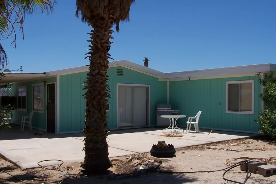 This is a beautiful oasis in the middle of Wonder Valley. The mature trees and shrubs shelter this home from view making it a very private hideaway. The home has two bedroom, one bath and has just been remodeled sporting new Kitchen, bath, Tile flooring in the Great Room, hall and bath. Laminate flooring in the bedrooms. It has been freshly painted, is move in ready and fully furnished. The home has power, propane and its own well. The well keeps these trees and plants healthy and beautiful. The views of all the surrounding mountains is fantastic. This is a lovely home, setting and location. Owner Will Carry. This one is a must see, Don't Wait - Call Now!!
