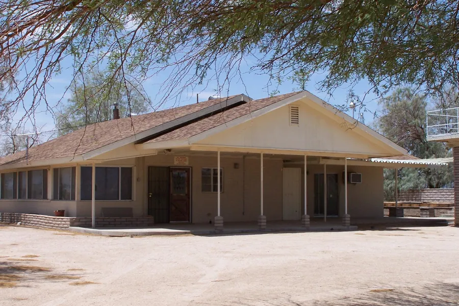 This is a fascinating brick ranch home. The home is very unique with a huge living room with a wood store, the very large main bedroom has a great fireplace. The second bedroom appears to have been an enclosed porch, but the property profile says two bedrooms, so must have been permitted. It has a nice full bathroom and a ample kitchen. There are horse facilities on the propertie and a huge detached RV garage and massive work shop, with a lift and hoist. There were wonderful Palm Trees all over this property, some are still alive and there is a working well. The mesquite Trees are holding there own. There is also a shed with an observation deck and a unfinished large pool, that is currently covered with wooden planks for safety and it is fenced. This could be such an assume ranch. I see it fixed up and it could be outstanding. This home is being so...