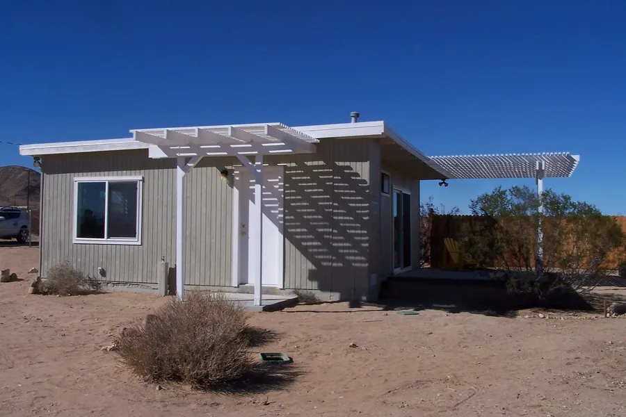 This home has been remodeled and is move in ready. The seller has fully fenced the property, new roof 5 yr. roof, pressure regulator/gas valve, water heater, double glazed windows, window covering, kitchen cabinets, tile flooring,heater, window awnings, patio cover & slab, fire pit, wind break, horse shoe court, foot bridges, pad for propane and work shop, flood lights, all utilities are in. The evaporative cooler has been rebuilt. This home is so cute and is just waiting for its new owner. You can enter from either the kitchen or the new sliding glass doors off of the living room. The views are great from this property and the home is very private, but is only about 15 minutes from downtown Yucca Valley. Don't Wait - Call Now!!