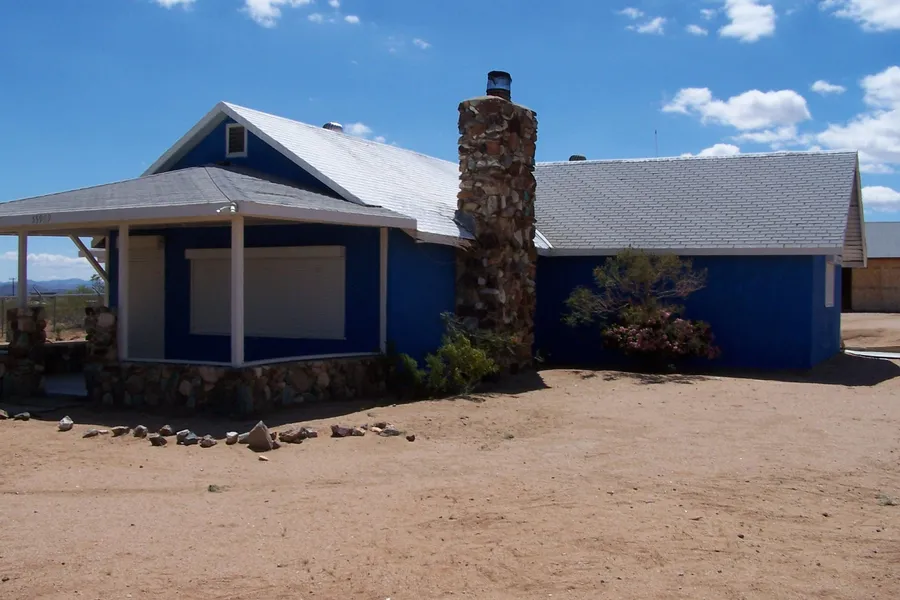This home was built in 1955, 1520 Sq. Ft. offering 2 bedrooms, 2 baths and a very large Living Room with a beautiful Rock Fireplace. It sports a large front porch for sitting out having coffee in the morning and maybe a cocktail at night. This home is a work in progress and is being sold in its present condition. There are security shudders on most of the Windows, needs some ceiling work in the living room, bathroom needs to be completed and the kitchen is waiting for cabinets, etc. One of the bathrooms is also the utility room for a water and dryer. It has a Barn, Workshop/Carport that is about the same size as the home. The grounds are beautiful, with even a wishing well. The Views are great of the surrounding Hills and Mountains. It is only 7 minutes from downtown Yucca Valley and around the corner from the eateries and markets in Flamingo...