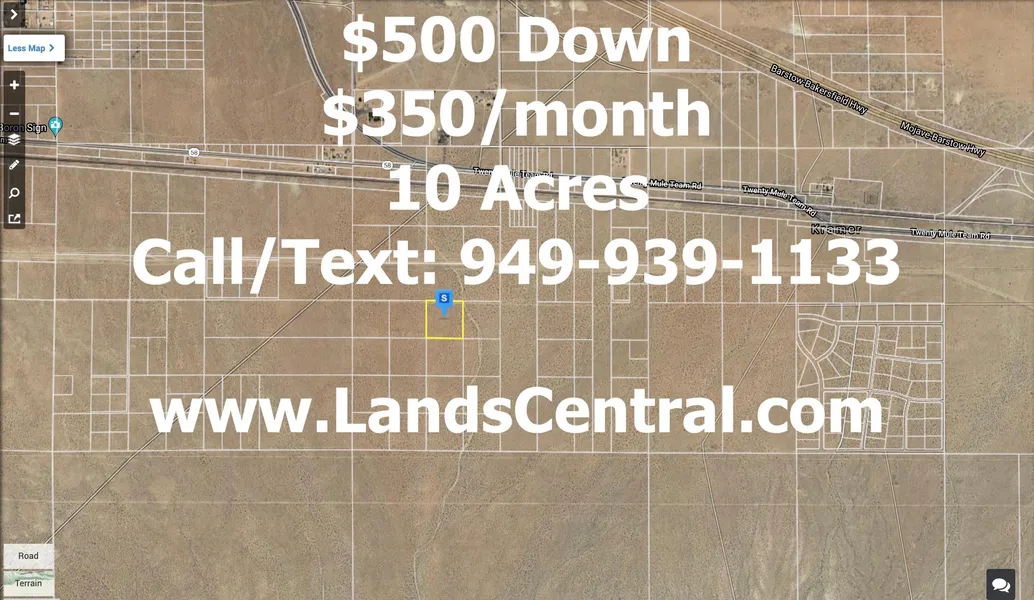 You can type these coordinates in Google Maps to find the land: 35.1881910860824, -117.476415610375