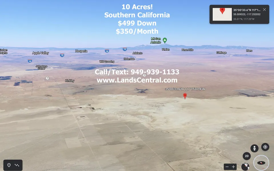 You can type these coordinates in Google Maps to find the land: 35.0093229874459, -117.252051792921